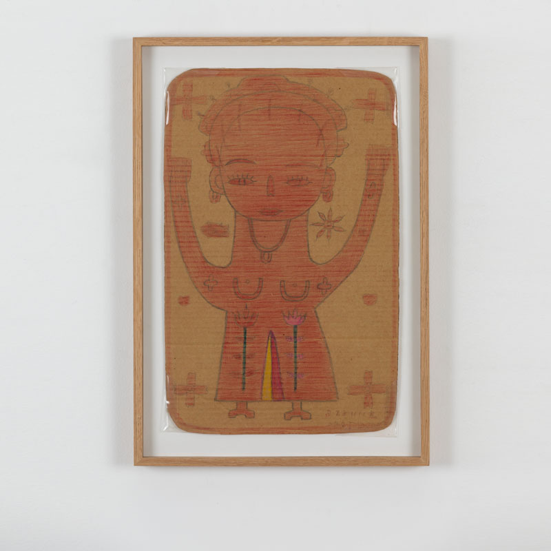 Masao Obata dessine sur son lit, arrondit les coins de cartons d’emballages qu’il récupère en cuisine puis trace des figures à la mine de plomb qu’il colorie en rouge, sa couleur fétiche. Il amoncelle les dessins dans la chambre de l’institution ou il est pris en charge. Les sujets, figures simples, couples, bateaux, avions, bâtiments sont traités à plat sans perspectives. Sa vie aura été rythmée par des internements successifs et une volonté inébranlable de dessiner.